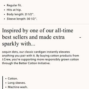Just in: Per JC, โInspired by one of our all-time best sellers and made extra sparkly with sequin dots, our classic cardigan instantly elevates anything you pair with itโ. NWT. Size x-large. See photos for measurements.