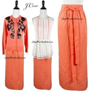 J.Crew NWT tie waist guava coral cotton/silk faille midi skirt @shop@iamwarrior