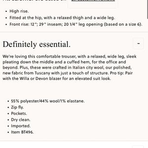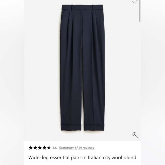 J.Crew NWT wide leg essential pant in Italian city wool Blend dark navy BT496