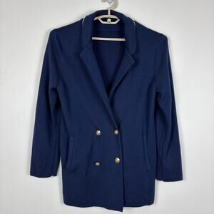 J.Crew Navy Blue Double-breasted Merino Wool sweater-blazer Medium AW040 relaxed