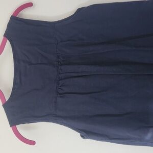 J Crew Navy Blue LINEN Blend Tank Shift Dress Floral Embroidered Womens XS