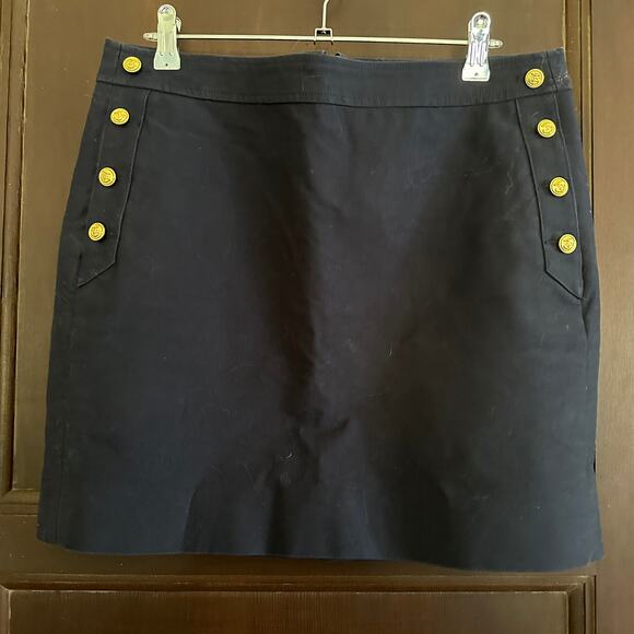 J.Crew | Navy Blue Twill Nautical Mini Skirt with Gold Anchor Buttons Size.8