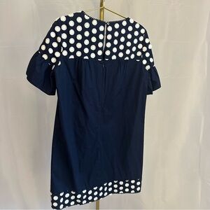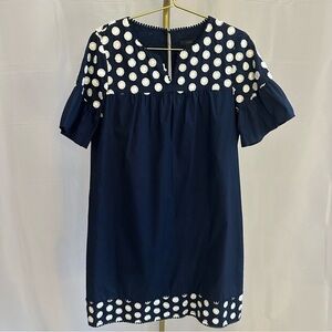 J.Crew Navy Dress Shift Embroidered Polka Dot Fringe Dress. Bell Sleeves size 4