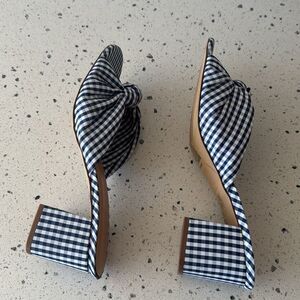 J. Crew Navy Gingham Knot Sandals Printed Mid Block Heel Women’s Size 10 EUC