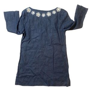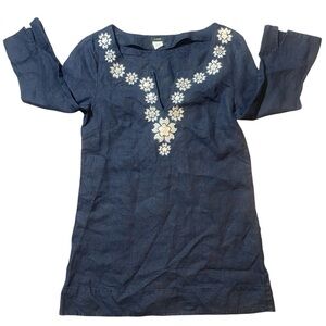 J.Crew Navy Linen Top with Embroidery size 2