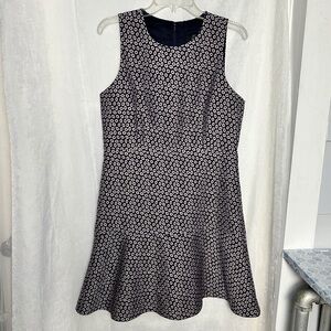 J.Crew Navy & Pink Jacquard Piper Foulard Print A-line Career Dress Sz 12