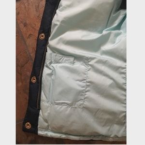 J.Crew navy puffer vest with turquoise blue interior. Pockets on front and interior pocket on the right! In good shape with very mild wear. Cozy outerwear and a great addition to your fall wardrobe!