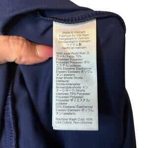 A chic and versatile skort that blends style with comfort. This J.Crew navy scallop skort is perfect for everything from errands to beach walks, tennis, or casual days out. The flattering scalloped hem adds a feminine twist, while built-in shorts keep you covered and confident on the move. Breathable stretch fabric makes it your go-to piece for active lifestyles and summer wardrobes.