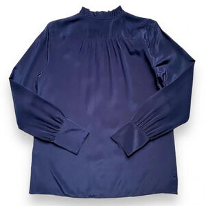 J.Crew Navy Silk Button Up Ruffle Blouse