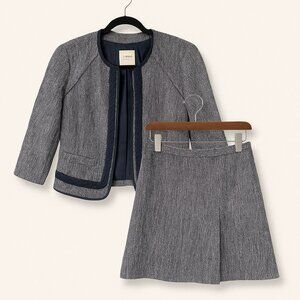 J.Crew Navy Tweed Skirt Suit Set Blazer Jacket & Skirt Womens 0 Petite
