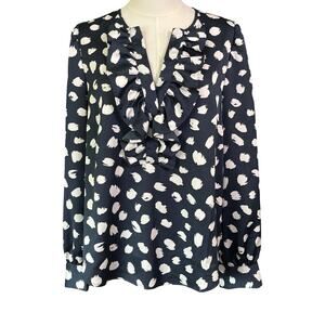 J.Crew, J.Crew blouse, NWT blouse, ruffle front top, navy blouse, brushstroke print, women’s medium top, office blouse, chic workwear, J.Crew AE862