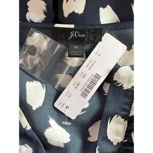 Brand new with tags J.Crew blouse featuring a chic navy background with abstract white brushstroke print. Feminine ruffle detail along the V-neckline adds texture and elegance. Made with lightweight polyester for comfort and easy care.