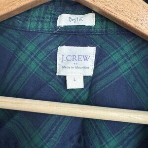 J.Crew Navy and Green Plaid Boy Fit Shirt - Size Large