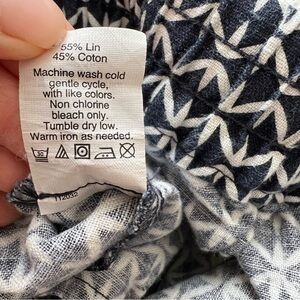 J. Crew Navy blue & white patterned pants. Size 6. 55% Linen 45%Cotton. Elastic Drawstring waist. Pockets. Excellent condition.
