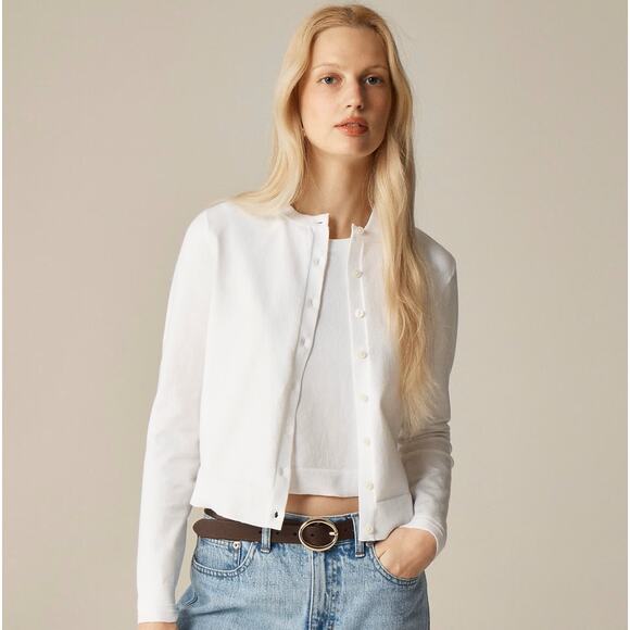 Timeless and endlessly versatile, the J.Crew New Jackie Cardigan is crafted from luxurious Egyptian cotton with just the right amount of stretch. Its clean white hue and classic silhouette make it perfect for layering over dresses, blouses, or tees—an essential piece for any polished wardrobe.