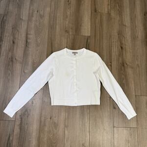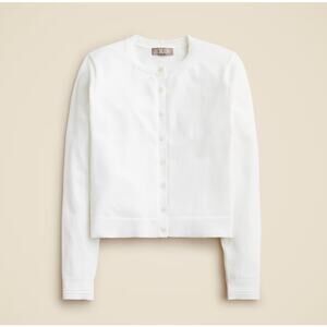 J.Crew New Jackie Cardigan SZ M White Egyptian Cotton Button Up Crewneck Stretch