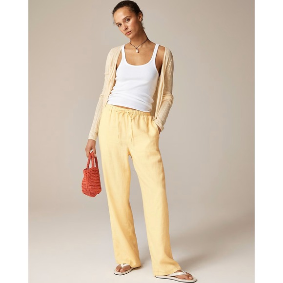 J.Crew New Soleil pant in linen Yellow Large NWOT