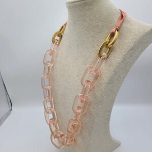 J Crew Nude Pink Lucite Gold Tone Link Ribbon Necklace