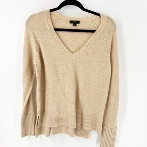 J.Crew Oatmeal Wool Alpaca Soft V-Neck Sweater Relaxed Asymmetric SIZE SMALL. EUC