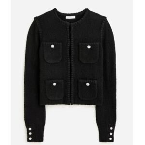 J.Crew Odette Sweater Jacket WMNS S Black Wool-Alpaca Crochet Trim Gold Button