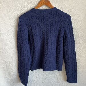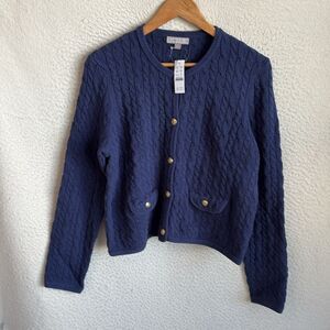 J.Crew Odette cable-knit sweater lady jacket in cotton-blend bouclé Medium Navy