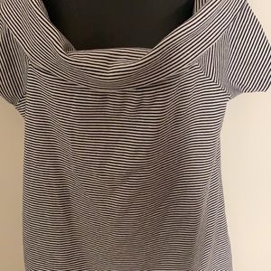 Tags: classy, j.crew, J. Crew top, women’s top, off the shoulder top, striped top, navy, white, black