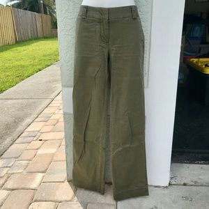Straight-leg J Crew pants in olive green. Cotton spandex blend. Worn and washed a few times, but still in very good condition.