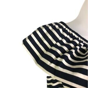 J.Crew One Shoulder Asymetric Top Wmns Size XS Navy Blue Stripe Ruffle Classic