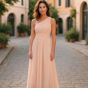 J.Crew Kylie One Shoulder Maxi Dress Size 2 Peach 100% Silk Chiffon Bridesmaid Pastel