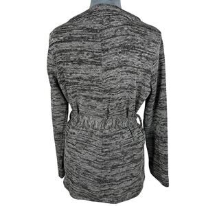 J.Crew Open Front Belted Cardigan Sweater Size Small Black White Pockets Cozy