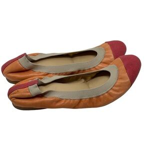 J.Crew Orange Leather Cap Toe Color Block Mila Ballet Flats Size 8