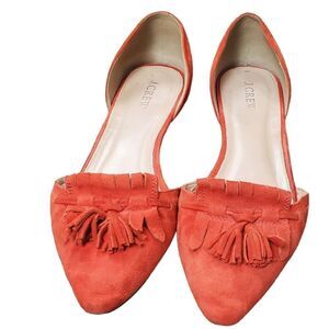 (GG) J. Crew Orange Suede Fringe Ballet, has a couple of spots inside with rubbed spots, no flaws on outside, Flats, Size 7.5