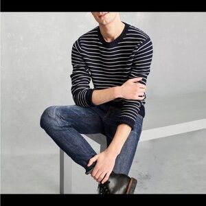 NWT J.Crew Organic cotton blue and white striped crewneck sweater - Large.