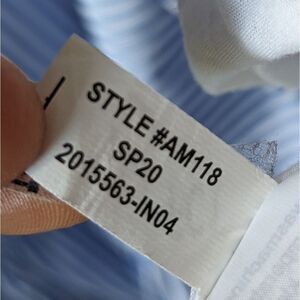 Excellent pre-loved condition. No holes or stains, it has pockets! Lined. Blue and white stripe with coral embroidery at the shoulders and back.