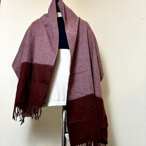 J.Crew Oversized Wool Wrap Scarf Shawl Accessory 75"x23" NWOT Bordeaux w/ Fringe