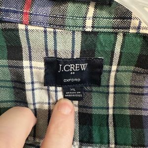 JCrew Oxford Plaid Button Down Long Sleeve Shirt green blue black red white XL