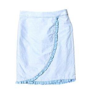 J.Crew Oxford Ruffle Pencil Skirt Blue Chambray Size 2