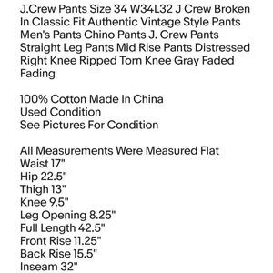 J.Crew Pants Size 34 W34L32 J Crew Broken In Classic Fit Authentic Vintage Style