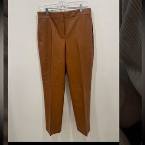 JCrew Pants Size 8P Saddle Color Faux Leather Front Pockets Straight Leg Sleek