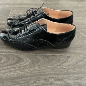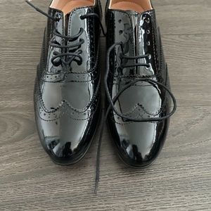 Never worn before black pattened leather oxfords