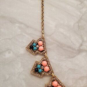 ✨ J.Crew Pave Rhinestone Crystal Blue Gold Coral Bohemian Necklace ✨