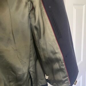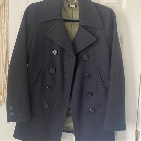 JCrew XS Peacoat. Dark navy blue with olive green interior. Bought in 2008. Heavy weight.
