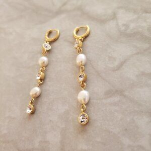 ✨ J.Crew Pearl Rhinestone Crystal Bridal Wedding Formal Drop Dangle Earrings ✨
