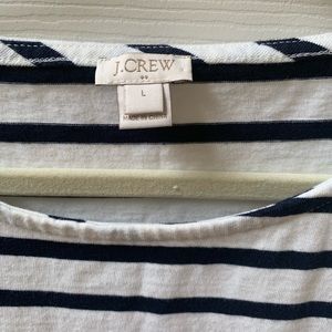 This adorable peplum sleeve top is an adorable add to your closet. White with navy stripes for a classic look.