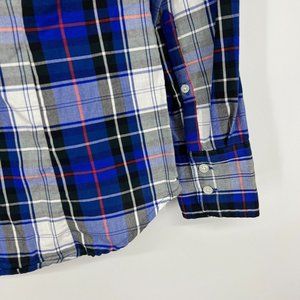 J.Crew Perfect Shirt Womens Size 00 Blue Black Tartan Plaid Button Down Long Sleeve Top. Great pre-owned condition.