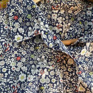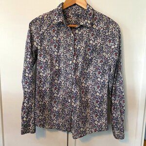 Great condition Liberty of London 100% cotton lawn print long sleeve blouse. Size 4, neck label removed. Navy and white with tiny pops of red, yellow and green. Beautiful classic!