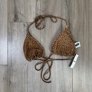 J.Crew Perfect String Bikini Top XL Brown Leopard Print Removable Pad Adjustable