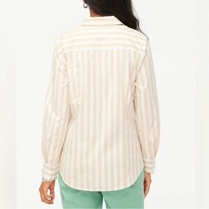 NWT. J.Crew Button up cotton shirt. Size Petite XS. Light khaki color. Striped tan and white.