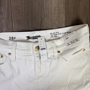 J.Crew Petite Lower Rise Full Length Slim Wide Leg Jeans 28P White Denim Stretch