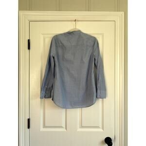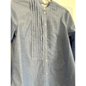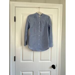 From J.Crew...This popular blouse is sold out online! In a light chambray color, and featuring delicate pin tuck pleats, the blouse has a split hem and buttons down the front. In excellent condition from a smoke free home!